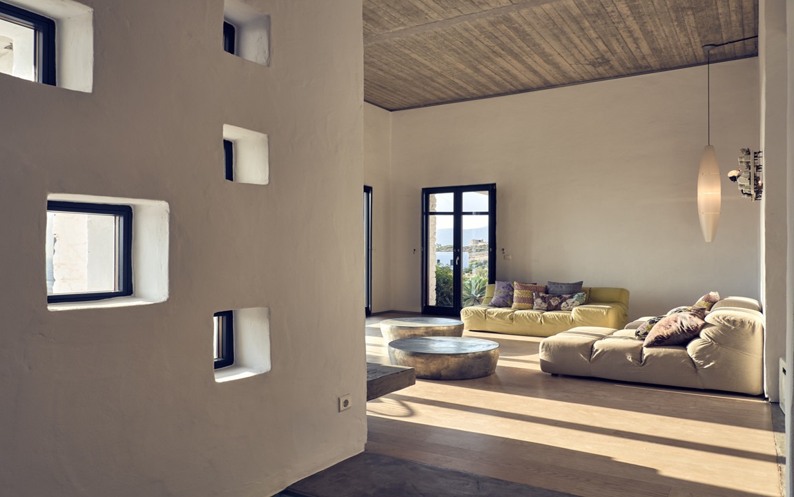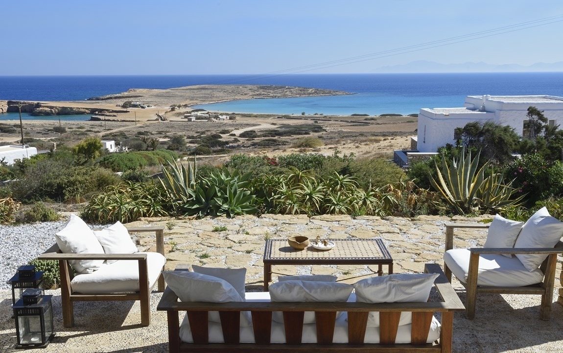 Let the zen juices flow in a boho chic stay! Our Koufonisi resort looks like an island painting. Its white shapes fade into the light brown landscape creating a strong contrast with the turquoise background of the water. Our retreat takes place into two neighboring villas which together with an outdoor covered yoga shala and a Thai-style massage room create a unique space to unwind and yoga finds a new meaning. Open spaces let the landscape flow into the interior, which features a joyful blend of traditional and contemporary elements. The palette is playful, with the dominating earth tones highlighted by vivid splashes of color. Both villas have large outdoor spaces, open terraces and bamboo shaded dining areas, ideal for hosting Greek style feasts. The main villa has a large open-plan kitchen which is used by our private chef to prepare our meals and for hands-on food workshops & tastings. The bedrooms are comfortable and cozy, with carefully selected fabrics and funky accessories, a touch of whimsy that creates a loving, homely atmosphere. The lower level of the villas is also brightly decorated and equipped with skylights to let the sunlight in.