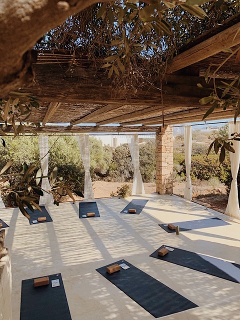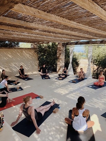 COVID-19 | Yoga & Safety: The yoga takes place in an outdoor covered yoga shala which is sunlight & easily aired and yoga mats will be placed within a two metres distance. Each guest will be provided with a Manduka yoga mat which they will keep for the duration of the retreat and be responsible for its cleaning. Adjustments will be offered only orally by the teacher.